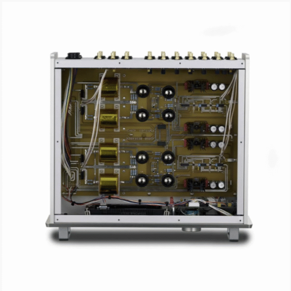 在採用單20A電源線之後,Reference 10從電源到音頻電路都是完全雙單聲道的。每個通道都有雙獨立的低壓和高壓變壓器;有雙單聲道真空管調節(每個通道一個 6H30 和一個 6550WE),雙單聲道音頻電路(每個通道四個 6H30),以及足夠的能量存儲以供嚴肅的功率放大器使用。