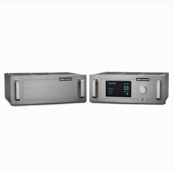 電源機箱通過兩根臍帶線連接到主機,在其偏移的 Audio Research 徽標下方只有一個綠色 LED。所有側面板的飾面均與前面板相同:自然陽極氧化,四分之一英寸厚,沒有可見的螺釘。整個機箱(包括後面板)被漆成銀色以完成外觀。有漂亮的全新透明亞克力蓋,帶有經過修改的穿孔圖案。而且,兩個機箱的前面板上都沒有印刷。